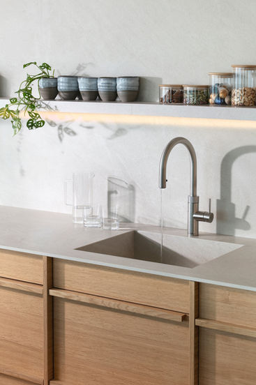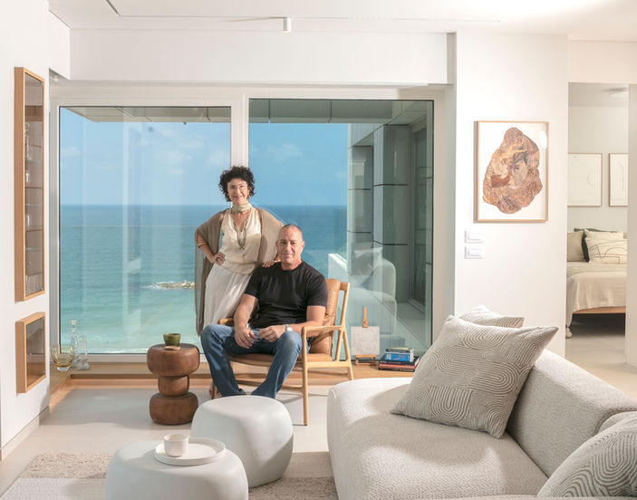 שימוש בחומרים טבעיים להעצמת אפקט הים ורצועת החוף הנשקפת מהחלונות